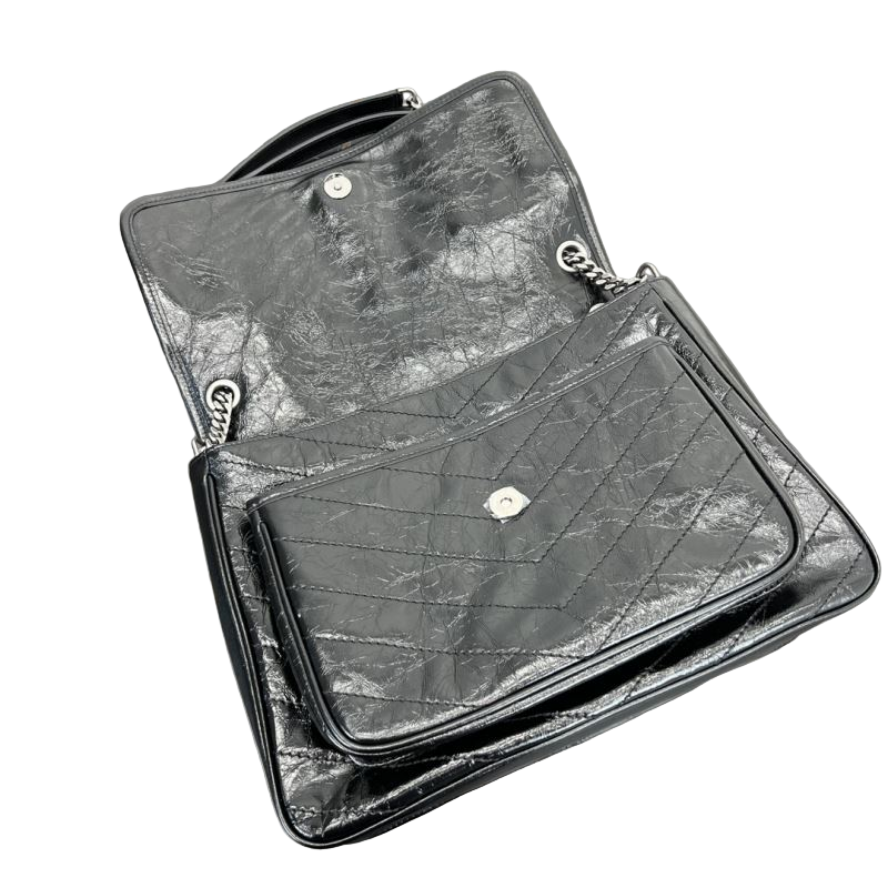 Saint Laurent Niki Medium Storm –Zwart Schoudertas in Vintage Kalfsleer